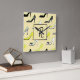 A monogrammed design, this clock fea chic yellow background, with high heel shoes decorated in black, polka dot, yellow, etc. This clock veut look great anywhere in your home, order yours today ! Artwork created by: AMBillustrations http://www.etsy.com/shop/AMBillustrations/