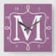 Chic Purple Monogram wall clock. Loopy white doodle frame and single initial monogram on bright purple wall clock. Donc, available in other colors.