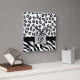 Les rayures colorées de zèbre et les peaux de léopard ou de guépard pour le design graphique sont l'une des tendances artistiques et design les plus chaudes, et est extrêmement populaire de la mode à la décoration maison. Ce noir et blanc sophistiqué avec zèbre gris ou gris et motif empreinte de léopard est disponible en plusieurs combinaisons de couleurs. Un emblème gris crée une zone de personnalisation avec votre monogramme. Ceci est entièrement personnalisable. Allez-y avec ces modèles de peaux sauvages !