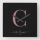 Horloge Carrée Monogramme d'or minimaliste Rose moderne Nom du sc