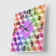 Horloge Carrée Monogramme lilas en cubes 3D dégradés arc-en-ciel
