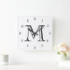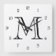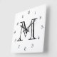 Horloge Carrée Monogramme noir chiffres de script sur wccn blanc