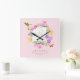 Horloge Carrée Monogramme rose du jardin floral
