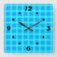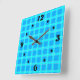 Horloge Carrée Motif à carreaux bleu néon