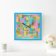 HORLOGE CARRÉE MOTIF ABSTRAIT COLORÉ