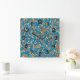 Horloge Carrée Motif Abstrait orange et bleu