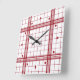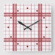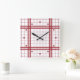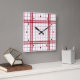 Horloge Carrée Motif carreaux classique rouge foncé sur fond blan