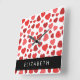Horloge Carrée Motif Des Coeurs, Coeurs Rouges, Votre Nom