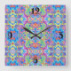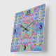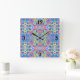 Horloge Carrée Motif Neon Blue, Lime, Purple & Orange Swirl