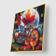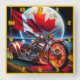 Horloge Carrée Moto canadienne avec drapeau sous pleine lune