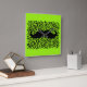 Horloge Carrée Moustache drôle sur arrière - plan vert citron