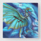 Jolie horloge de style dessin animé générée par IA représentant un dragon en bleu, violet et vert. Idée de cadeau idéale pour les amateurs de fantasy et de dragons.