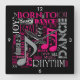 Danser votre passion ? Cette horloge murale cool avec un design de nuage de mots dit tout. Certains mots, entrecoupés de notes musicales, sont : respirer, vivre, l'amour, la danse, le rythme et né à la danse. Cette version présente des tons rose, gris et blanc sur la couleur arrière - plan de votre choix. Recherchez ID277 pour voir d'autres options de couleur et faire correspondre les produits avec cette conception.