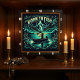 Il s'agit d'une illustration audacieuse et dynamique, avec un thème central de la pêche. Le design comprend une personne dans un petit bateau sur un lac la nuit, entourée d'un impressionnant affichage de boulons électriques. L'expression "NÉ AU POISSON" est écrite dans une bannière stylisée en haut. Toute la scène est encadrée par des poissons et des feuillages brillants et décoratifs, donnant à l'oeuvre une sensation puissante et énergique.