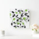 Horloge Carrée nom de l'athlète aux balles de football noir vert