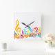 Horloge Carrée Notes de musique colorées