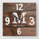 Horloge Carrée Noyer rustique Nom de famille Monogram Ferme