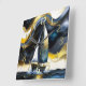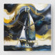 Aquarelle Abstraite Peinture Gold Sailboat dans la nuit