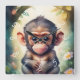 Horloge Carrée Nurserie de bébé chimpanzé aquarelle
