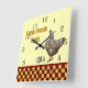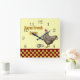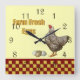 Un design de style champêtre, avec une image vintage d'une poule dans le coin droit, et trois oeufs de style vintage sous le texte "Farm Fresh Eggs". Des chèques rouges et jaunes bordent l'extérieur.