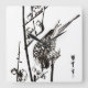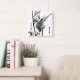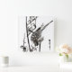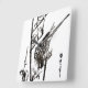 Horloge Carrée Oiseau japonais sur une branche - noir et blanc