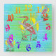 Oiseaux tropicaux sur fond ombragé. Mettez à jour votre maison, chalet, patio extérieur avec une touche d'été. Oiseaux tropicaux, fond multicolore et numéros d'horloge funky coloré.