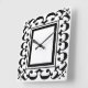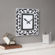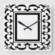 This elegant, decorative black and white clock feobjets sur ornate abstract curlicue pattern surrounding a central square.