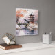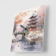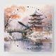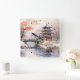 Horloge Carrée Pagode sakura japonais et gris rose du pont