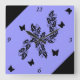 Horloge Carrée papillon noir sur lilas