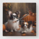 Horloge Carrée Papillon Puppy Automne Citrouille de plaisir