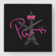 Horloge Carrée PARIS, Tour Eiffel avec Bow rose