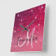 Horloge Carrée Parties scintillant moderne rouge et rose Nom des