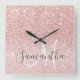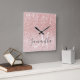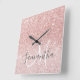 Horloge Carrée Parties scintillant rose moderne étincelles Nom pe