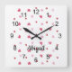 Little girls and big ones veut love this simple heart patterned wall clock personalized just for them. Pattern created in assted pastel pink colors tossed on a white background. Just edit the optional name text in the easy Zazzle text editor Your choice of round or square.