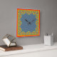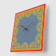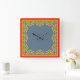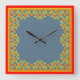 Une jolie horloge murale Carré, avec une bordure de fleurs de Pot Marigold sur un arrière - plan Indigo avec bordure de Scarlet. Une partie de la collection Posh & Painterly 'Marigold Medley'.