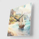 Paysage lumineux avec voiliers en mer. Graphique informatique, effet de peinture.