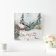 Winter Landscape Lakeside horloge cabine avec "There's No Place Like Home" dans la typographie de script tendance. Ce décor rustique de campagne a une scène aquarelle d'un lodge au bord du lac, des pins, un canard sur le lac, de la neige et un traîneau.