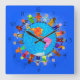 Le message de paix pour le clock factice du mur, perfect pour les classrooms, schools, as well as children's rooms. This bright, colorful design is a reproduction of a fabric collage created from batik fabrics by South Carolina artisan, Amy Kuhl Cox.