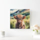Aquarelle Peinture Baby Highland Vache Assis dans un champ