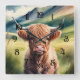 Horloge Carrée Peinture aquarelle Bébé Highland Cow assise