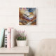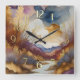 Horloge Carrée Peinture Paysage Abstrait Or Bleu pourpre