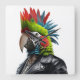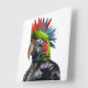 Funny Punk Rocker Parrot avec coiffure mohican portant une veste en cuir.