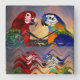 HORLOGE CARRÉE PERROQUETS HYPER ROUGES, ARAS BLEUS, REFLECTIONS C
