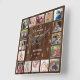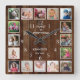 Horloge Carrée Personalized 16 Photo Collage Quote Dark Wood