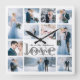 Create a commemorative keepsake photo collage clock for the newlyweds with 11 of your favorite wedding and couple pictures or images. The design feels the title FOREVER LOVE and personalized with the new Mr and Mrs name and wedding date in editable silver silver gray color against a suggested white background color. The text font styles and colors can be change d to coordinate with your wedding theme colors. Makes a mémorable anniversary venin. Contact the designer BEFORE ORDERING for assistance with design modification/personalization ou help transferring the design to another product via Zazzle Chat or makeitaboutyoustore@gmail.com.