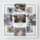 Cette horloge photo simple et moderne a un look géométrique avec des rayures bleu foncé et jaune doré sur un arrière - plan blanc. Il comprend la place pour 9 de vos photos de famille personnalisées. L'horloge comporte 3 photos horizontales, 2 verticales et 4 carrés de style Instagram. L'horloge a un cadre bleu ciel clair autour de chaque photo. Les numéros d'horloge forment un carré dans le centre, ainsi que la place pour votre nom de famille et une autre courte ligne de texte, comme la date établie de votre famille. Il suffit d'utiliser les modèles faciles pour personnaliser. "Customisez plus loin" pour apporter des changements plus détaillés.