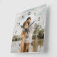 Horloge Carrée photo de mariage élégant avec chiffres noirs jour