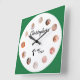 Horloge Carrée photos de bébé de 12 mois personnalisées en vert
