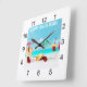 Trois piments rouges sur la plage. Chaud jour ensoleillé, mer bleue, sable blanc, parasols et sombreros. Deux piments sont noyés sous les parasols de plage, le troisième est profond de la taille dans l'eau. Chaque heure est une happy hour à la plage. Soleil, mer, sable, Sombrero. C'est drôle une des belles horloges murales carrés.