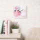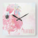 Jolie horloge murale tropicale avec aquarelle d'un flamant rose, avec des plumes pastel sur la tête, contre un arrière - plan pastel. Le texte rose lit le Flamant rose et peut être personnalisé pour lire ce que vous voulez. Joli mur décoratif.
